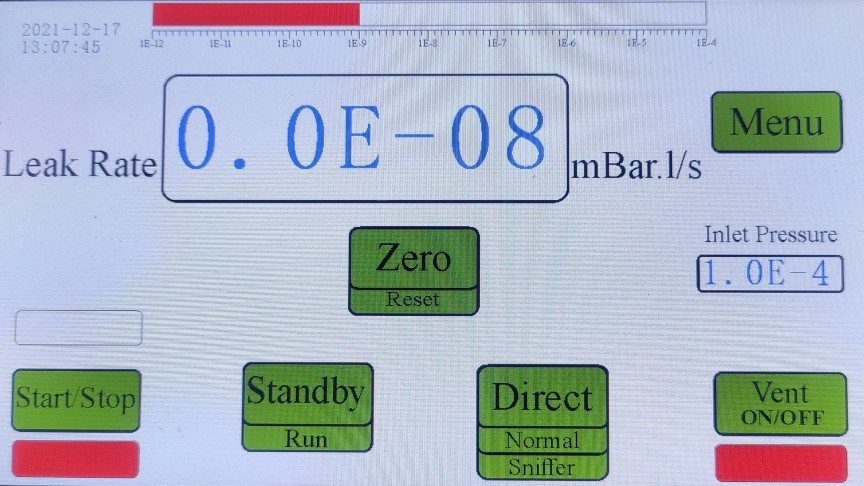 - SelectableUnits: mbar l/s ,Pa.m³/s, Torr l/s, cc/sec
